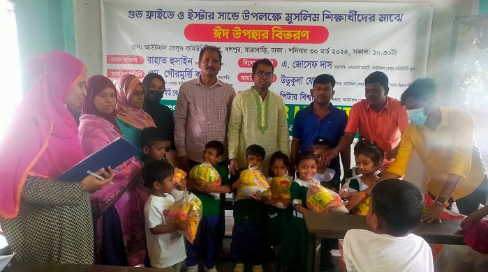 সুবিধাবঞ্চিত শিশুদের মাঝে ঈদ উপহার সামগ্রী বিতরণ করেছে ধর্মীয় সংগঠন রূপান্তর মিনিস্ট্রিজ। শনিবার ( ৩০ মার্চ) গুড ফ্রাইডে ও ইস্টার সানডে উপলক্ষে রাজধানীর ধলপুরে আউটফল তেলুগু কমিউনিটি স্কুলে ৫০ জন মুসলিম শিক্ষার্থীর হাতে ঈদ সামগ্রী তুলে দেওয়া হয়।