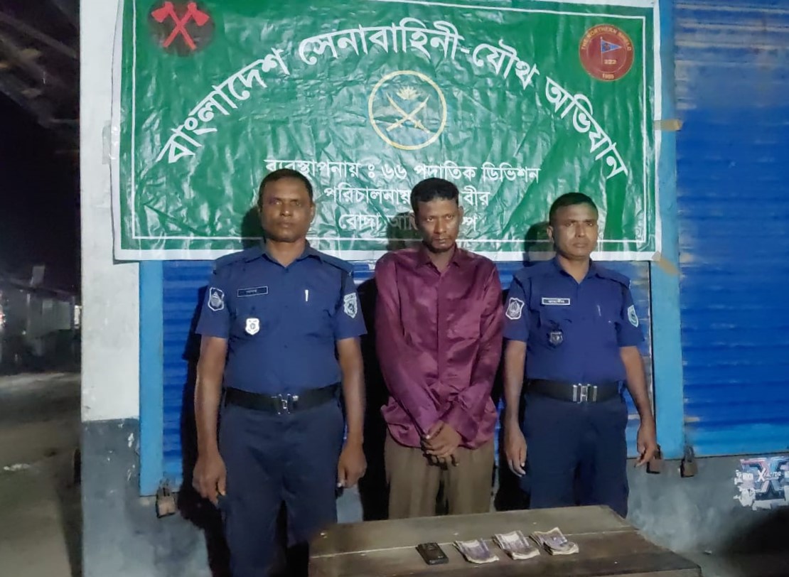বোদায় যৌথবাহিনীর অভিযানে জাল টাকা সহ ১ জুয়ারী আটক
