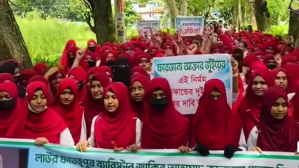 ব্রাহ্মণবাড়িয়ায় ফতেহপুর ব্যারিস্টার জাকির আহাম্মদ কলেজের প্রাক্তন শিক্ষার্থী ফারজানা আক্তার জুঁইকে হত্যা করা হয়েছে বলে অভিযোগ উঠেছে। এ ঘটনায় হত্যাকারীদের দ্রুত গ্রেপ্তার ও দৃষ্টান্তমূলক শাস্তির দাবিতে আজ বৃহস্পতিবার (২৫ সেপ্টেম্বর) মানববন্ধন ও প্রতিবাদ সমাবেশ করেছে ওই কলেজের শিক্ষার্থীরা।