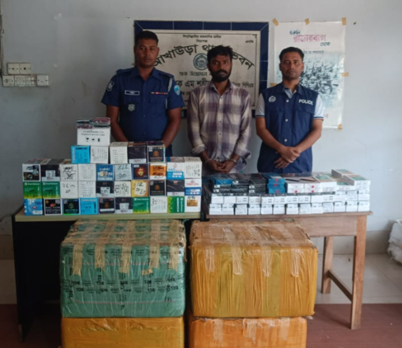 বিজ্ঞপ্তিতে বলা হয়, আগেরদিন বুধবার বিকালে গোপন সংবাদের ভিত্তিতে কুমিল্লা-ব্রাহ্মণবাড়িয়া সড়কের উপজেলার ধরখার ভাঙা ব্রীজ এলাকায় চোরাচালানবিরোধী অভিযান চালায় আখাউড়া ধরখার ফাঁড়ি থানা পুলিশের একটি টহল দল।