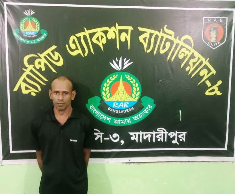 মাদারীপুর জেলার শিবচর উপজেলার চরকাচি কাটা(সাবেক উপজেলা চেয়ারম্যান আব্দুল মান্নান খানের বাড়ি সংলগ্ন) এলাকার রানু বেগম (৬৫) নামে এক বৃদ্ধার হত্যা মামলার আসামীকে গ্রেফতার করেছে র্যাব-৮ মাদারীপুর।