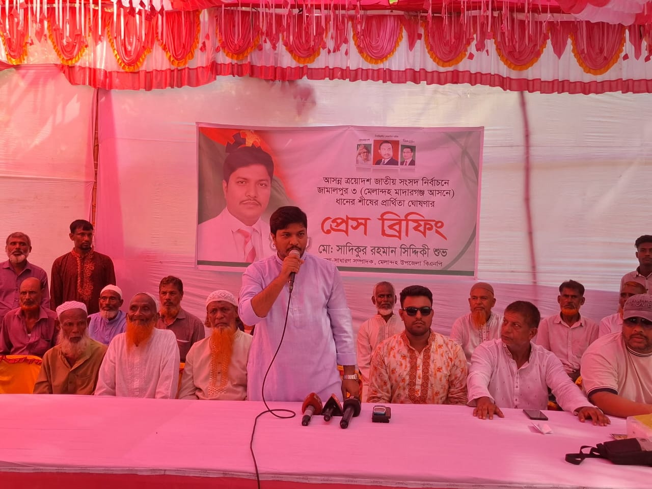 সংবাদ সম্মেলনে সাদিকুর রহমান সিদ্দিকী শুভ বলেন আল্লাহ আমাকে অনেক দিয়েছেন আমি মেলান্দহ - মাদারগঞ্জবাসীর ভাগ্য পরিবর্তন করতে চাই, দারিদ্র্যমুক্ত জীবন গড়াসহ এলাকার অসহায় মানুষদের পাশে দাঁড়াতে চাই। এলাকার জনগণের কাজ থেকে আমার কোন কিছু চাওয়ার নেই, মেলান্দহ - মাদারগঞ্জবাসী আমাকে সুযোগ দিলে সমাজ উন্নয়নে প্রতিনিয়ত কাজ করে যাব ইনশাল্লাহ।