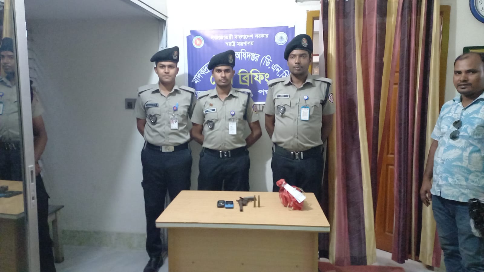 মাদকদ্রব্য নিয়ন্ত্রণ অধিদপ্তরের পঞ্চগড় জেলা কার্যালয়ের সদস্যরা জানান, সোমবার দুপুরে গোপন সংবাদের ভিত্তিতে একটি বিশেষ অভিযান পরিচালনা করা হয়। এসময় জেলা প্রশাসন, গোয়েন্দা সংস্থা এনএসআই ও সোনাপাতিলা বিজিবি ক্যাম্পের সদস্যদের নিয়ে সোনাপাতিলা সীমান্ত এলাকার পশ্চিমপাড়া গ্রামের কুদ্দুসের বাড়িতে অভিযান পরিচালনা করা হয়। তল্লাশি চালিয়ে বাড়ির পূর্ব পাশের একটি খড়ির ঘরে মাটির নিচে পুতে রাখা অবস্থায় একটি দেশীয় তৈরি পিস্তল, দুই রাউন্ড গুলি এবং ছয় বোতল ভারতীয় ফেন্সিডিল উদ্ধার করে জব্দ করা হয়। একই সাথে জব্দ করা হয়েছে দুইটা বাটম ফোন। তবে অভিযানের সময় কাউকে আটক করা সম্ভব হয়নি।
