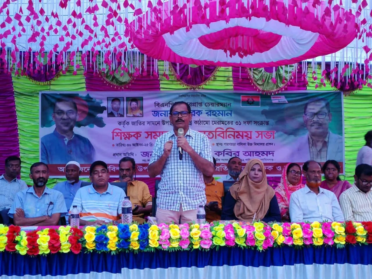 প্রধান অতিথির বক্তব্যে ফারুক কবির আহমদ বলেন, বিএনপির ভারপ্রাপ্ত চেয়ারম্যান তারেক রহমান ৩১ দফায় স্পষ্ট উল্লেখ করেছেন, আগামীতে বিএনপি রাষ্ট্র ক্ষমতায় আসলে শিক্ষকদের বেতন ভাতার বিষয়ে সবচেয়ে বেশি গুরুত্ব দেওয়া হবে এবং প্রয়োজনে শিক্ষাব্যবস্থা সরকারিকরণ করা হবে।