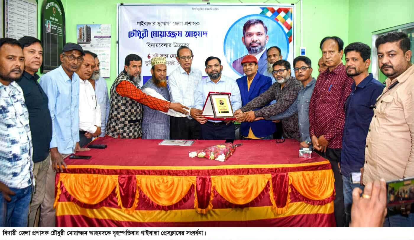 জেলা প্রশাসক মোয়াজ্জম আহমদকে গাইবান্ধা প্রেসক্লাবের বিদায়ী সংবর্ধনা