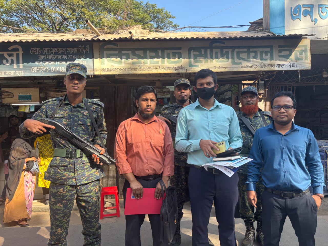 বুধবার (১৯ নভেম্বর) দুপুর ১টার দিকে পরিচালিত এ অভিযানে ঔষধ ও কসমেটিকস আইন, ২০২৩ লঙ্ঘনের দায়ে পপুলার ফার্মেসিকে ৩,০০০ টাকা, নিউ মা ফার্মেসিকে ৬,০০০ টাকা, মাহি মেডিকেল হলকে ৬,০০০ টাকা এবং আঁখি ফার্মেসিকে ৬,০০০ টাকা জরিমানা করা হয়।