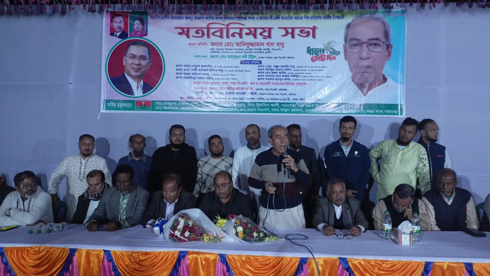 গাইবান্ধা জুবিলী সরকারি প্রাথমিক বিদ্যালয় প্রাঙ্গনে গত কাল ২২নভেম্বর সন্ধ্যা ৭টায় গাইবান্ধা শহর বিএনপির আয়োজনে আসন্ন ত্রয়োদশ জাতীয় সংসদ নির্বাচনে গাইবান্ধা সদর-২ আসনে বিএনপি মনোনীত ধানের শীষ প্রতীকের প্রার্থীর নির্বাচনী মতবিনিময় সভা অনুষ্ঠিত হয়েছে।