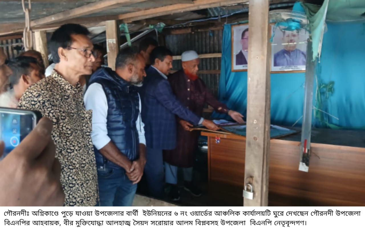 গৌরনদীতে বিএনপি’র আঞ্চলিক কার্যালয়ে রহস্যজনক অগ্নিকাণ্ড