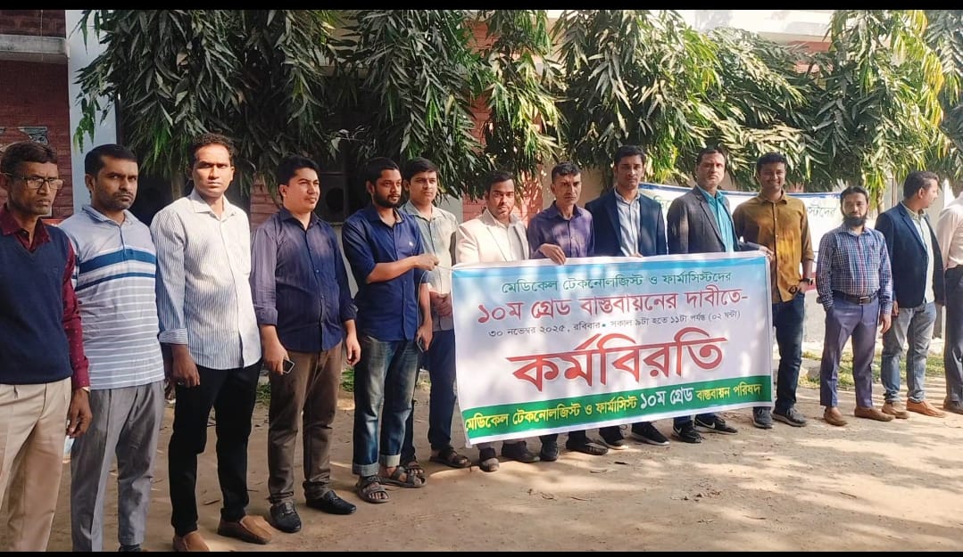 ভালুকায় মেডিকেল টেকনোলজিস্ট ও ফার্মাসিস্টদের কর্মবিরতি