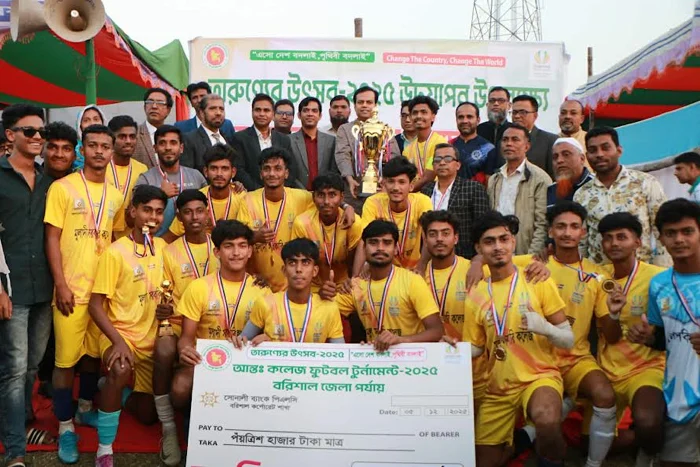 ‘এসো দেশ বদলাই, পৃথিবী বদলাই’-এই স্লোগানকে সামনে রেখে তারুণ্যের উৎসব-২০২৫ উদযাপন উপলক্ষ্যে বরিশালে অনুষ্ঠিক আন্তঃকলেজ ফুটবল টুর্নামেন্টে চ্যাম্পিয়ন হয়েছে সরকারি মুলাদী কলেজ।
