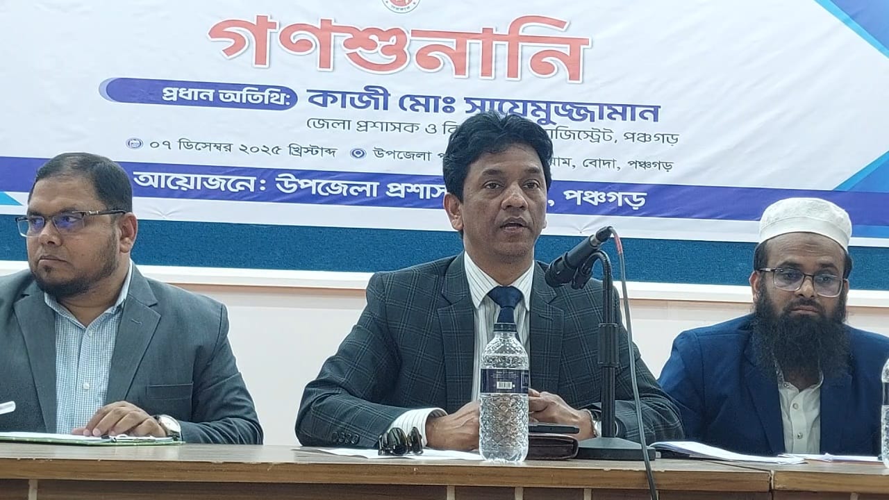 পঞ্চগড় জেলার মানুষের প্রত্যাশা পূরণে কাজ করতে চাই বলে মন্তব্য করেছেন জেলা প্রশাসক ও জেলা ম্যাজিস্ট্রেট কাজী মো: সায়েমুজ্জামান। পঞ্চগড় জেলাকে মাদক, দূর্নীতি মুক্ত মডেল জেলা গড়ার লক্ষে নিয়মিত গণশুনানির অংশ হিসেবে বোদা উপজেলায় গণশুনানিতে এ কথা বলেন তিনি।