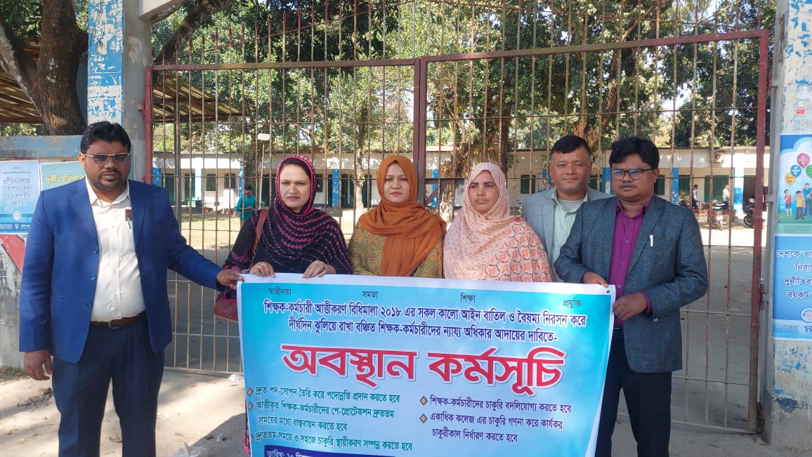 বোদা সরকারি পাইলট মডেল স্কুল এন্ড কলেজের শিক্ষকদের অবস্থান কর্মসূচি, কালো আইন বাতিল ও বৈষম্য দূরীকরণ দাবি