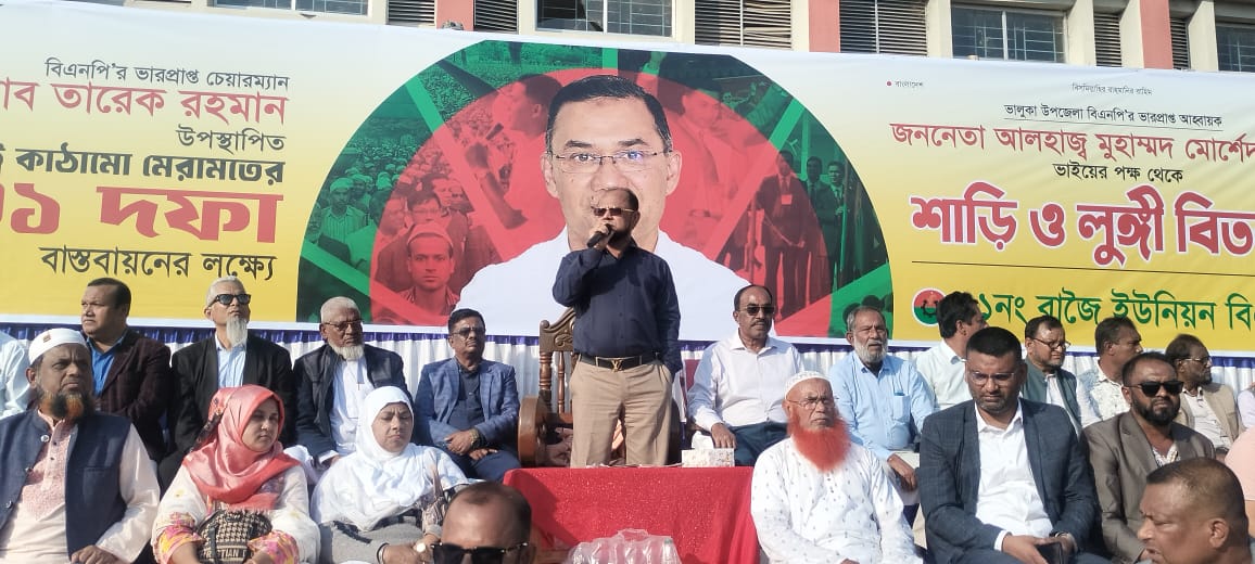 ভালুকায় বিএনপির রাষ্ট্রকাঠামো মেরামতের ৩১ দফা ও শাড়ি লুঙ্গী বিতরণ
