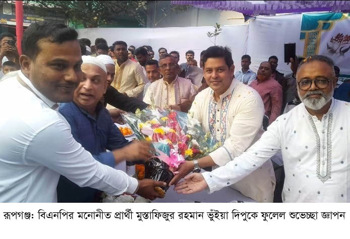 ত্রয়োদশ জাতীয় সংসদ নির্বাচনকে সামনে রেখে নারায়ণগঞ্জ-১(রূপগঞ্জ) আসনের বিএনপির মনোনীত প্রার্থী মুস্তাফিজুর রহমান ভুঁইয়া দিপু রূপগঞ্জ উপজেলার মুড়াপাড়া ইউনিয়নের শিল্পকলা মাঠ, মাছিমপুর, বানিয়াদী ও মুড়াপাড়া নামা বাজার মাঠে মতবিনিময় সভা করেছেন। গতকাল ১৯ডিসেম্বর শুক্রবার সকাল থেকে রাত পর্যন্ত তিনি পর্যায়ক্রমে এ মতবিনিময় সভা করেন।