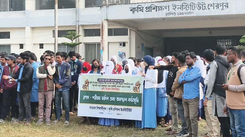 শেরপুরে ৮ দফা দাবিতে এটিআই শিক্ষার্থী