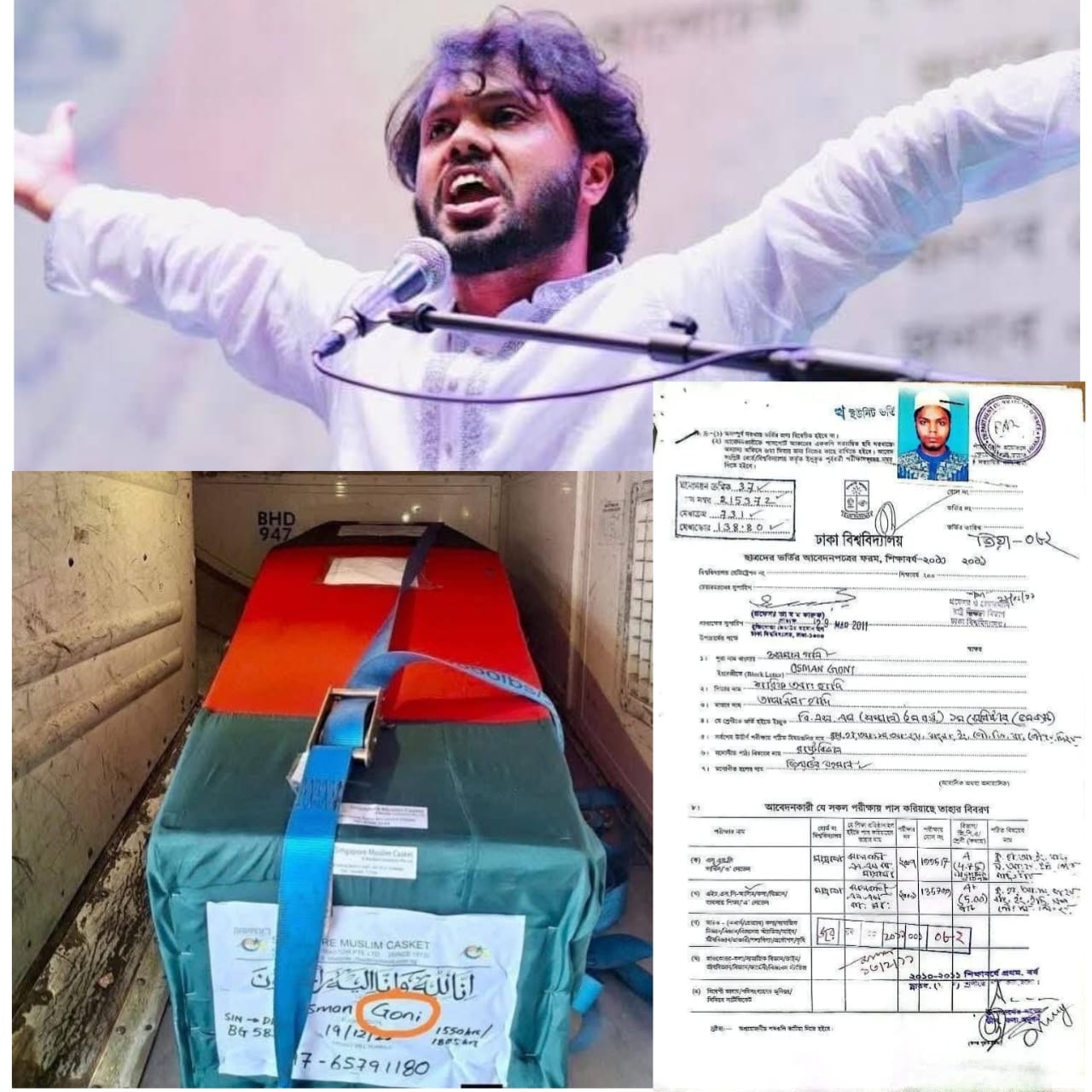 দেশে তার লাশের কফিনে গায়ে লেখা নিয়ে সংশয় জাগে। বিভিন্ন মহলে কথা উঠে, এবং সোস্যাল মিডিয়ায় তার ঢাকা বিশ্ববিদ্যালয়ের ভর্তি ফরমের কপিও প্রকাশ হয়, তার পরিপেক্ষিতে সকলে অবগতির জন্য লেখাটি। ওসমান হাদি- এই নামেই যাঁকে দেশের মানুষ চিনেছে, তবে তাঁর প্রকৃত নাম ওসমান গণি। সামাজিক ও রাজনৈতিক আন্দোলনে সক্রিয় হওয়ার সময় তিনি ‘ওসমান হাদি’ নামেই পরিচিতি লাভ করেন। তবে পারিবারিক ও সরকারি নথিতে তাঁর নাম ছিল ওসমান গণি।