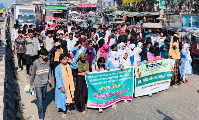 বেগমগঞ্জে শিক্ষার্থীদের বিক্ষোভ এবং সড়ক অবরোধ