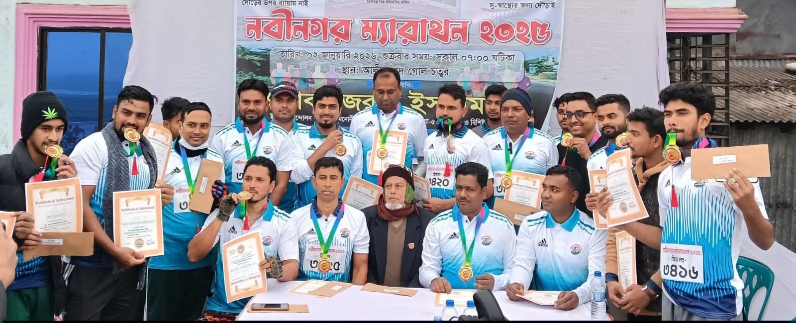 নবীনগরে প্রথমবারের মতো আয়োজিত “নবীনগর ম্যারাথন ২০২৫” উৎসবমুখর পরিবেশে সম্পন্ন হয়েছে। কুয়াশাচ্ছন্ন শীতের সকালে মহান বিজয় দিবসকে স্মরণীয় করে রাখতে রানার্স ক্লাব নবীনগরের উদ্যোগে এই ম্যারাথন প্রতিযোগিতা অনুষ্ঠিত হয়।