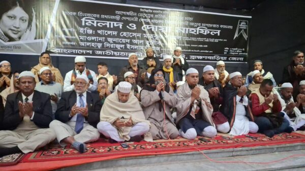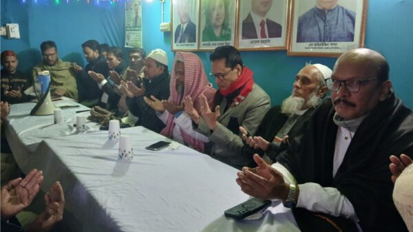 বিএনপির চেয়ারপার্সন সাবেক প্রধানমন্ত্রী, দেশনেত্রী বেগম খালেদা জিয়ার রুহের মাগফেরাত কামনায় সোমবার দুপুরে বরিশালের গৌরনদী উপজেলার রাজাপুরে ওয়ার্ড বিএনপির উদ্যোগে মিলাদ মাহফিল ও দোয়া মোনাজাত অনুষ্ঠিত হয়েছে। বাংলাদেশ জাতীয়তাবাদী দল