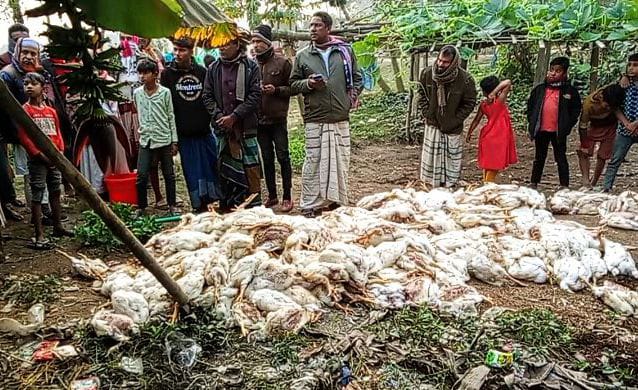 রায়গঞ্জ হাটপাংগাসীতে পূর্ব শত্রুতার জেরে মেরে ফেলা হয়েছে চার হাজার মুরগি, অভিযোগ খামারির
