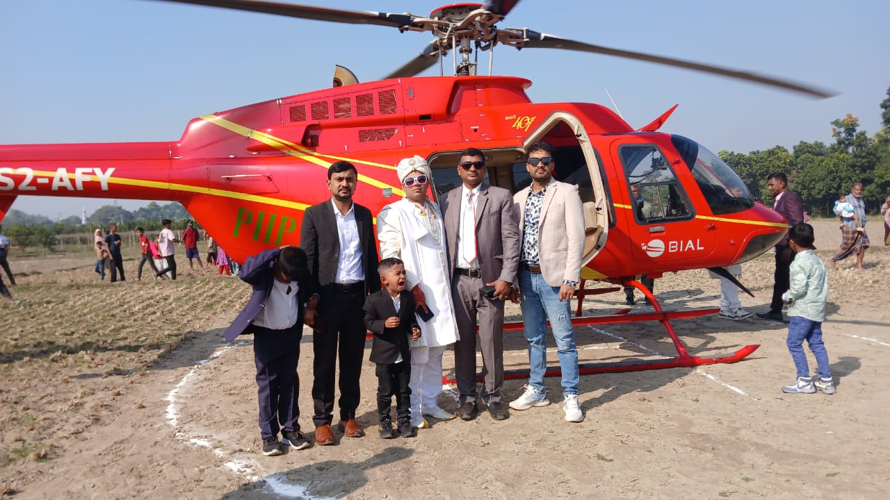 ব্রাহ্মণবাড়িয়ার নবীনগরে দীর্ঘদিনের লালিত স্বপ্ন পূরণ করতে হেলিকপ্টারে চড়ে রাজকীয়ভাবে বিয়ে করলেন ইতালি প্রবাসী শেখ মো. মোবারক হোসেন। শুক্রবার (৯ জানুয়ারি) দুপুরে উপজেলার প্রত্যন্ত গ্রাম উত্তর লক্ষ্মীপুর থেকে জেলা শহরের ভাদুঘর এলাকায় কনের বাড়িতে এই ব্যতিক্রমী বরযাত্রার আয়োজন করা হয়।