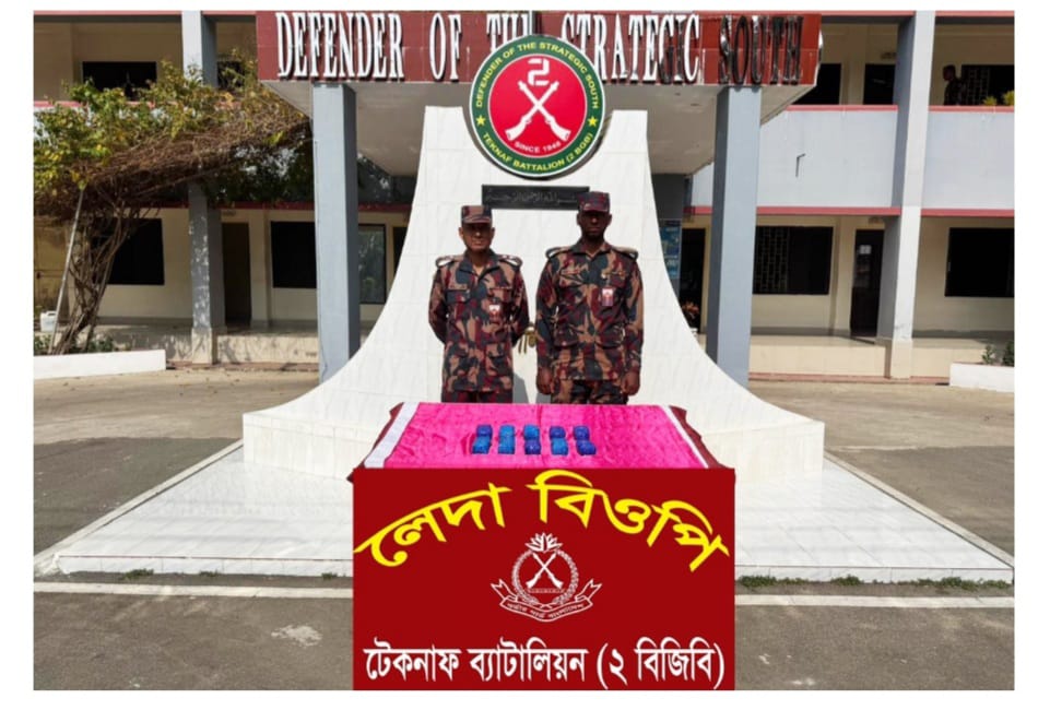 গোপন সংবাদের ভিত্তিতে টেকনাফ ব্যাটালিয়ন (২ বিজিবি) রোববার (১১ জানুয়ারি) রাতে টেকনাফ উপজেলার লেদা বিওপি এলাকায় বিশেষ অভিযান পরিচালনা করে। অভিযানটি পরিচালিত হয় নাফ নদীর তীরবর্তী আলীখাল পোষ্ট সংলগ্ন কেওড়া বাগান এলাকায়—যে অঞ্চলটি দীর্ঘদিন ধরে মাদক পাচারকারীদের একটি পরিচিত রুট হিসেবে ব্যবহৃত হয়ে আসছে।