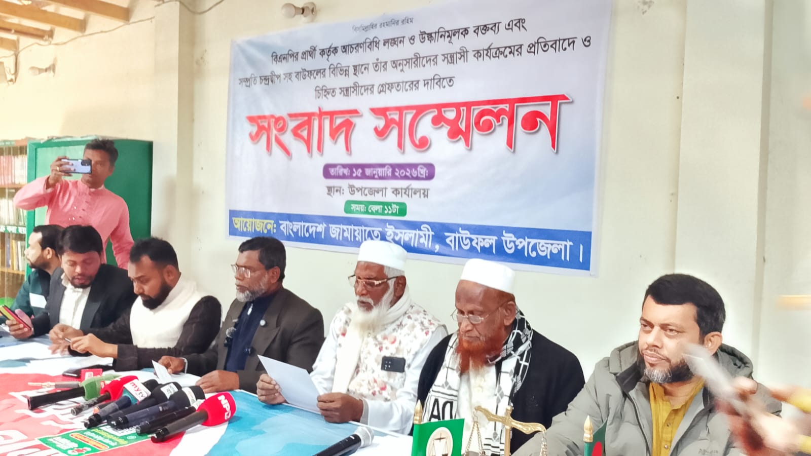 ত্রয়োদশ জাতীয় সংসদ নির্বাচনকে সামনে রেখে বিএনপির প্রার্থী কর্তৃক নির্বাচনী আচরণবিধি লঙ্ঘন, উষ্কানিমূলক বক্তব্য প্রদান এবং বাংলাদেশ জামায়াতে ইসলামীর নেতা–কর্মীদের ওপর হামলার প্রতিবাদে পটুয়াখালীর বাউফল উপজেলায় সংবাদ সম্মেলন করেছে বাউফল উপজেলা জামায়াতে ইসলামী।
