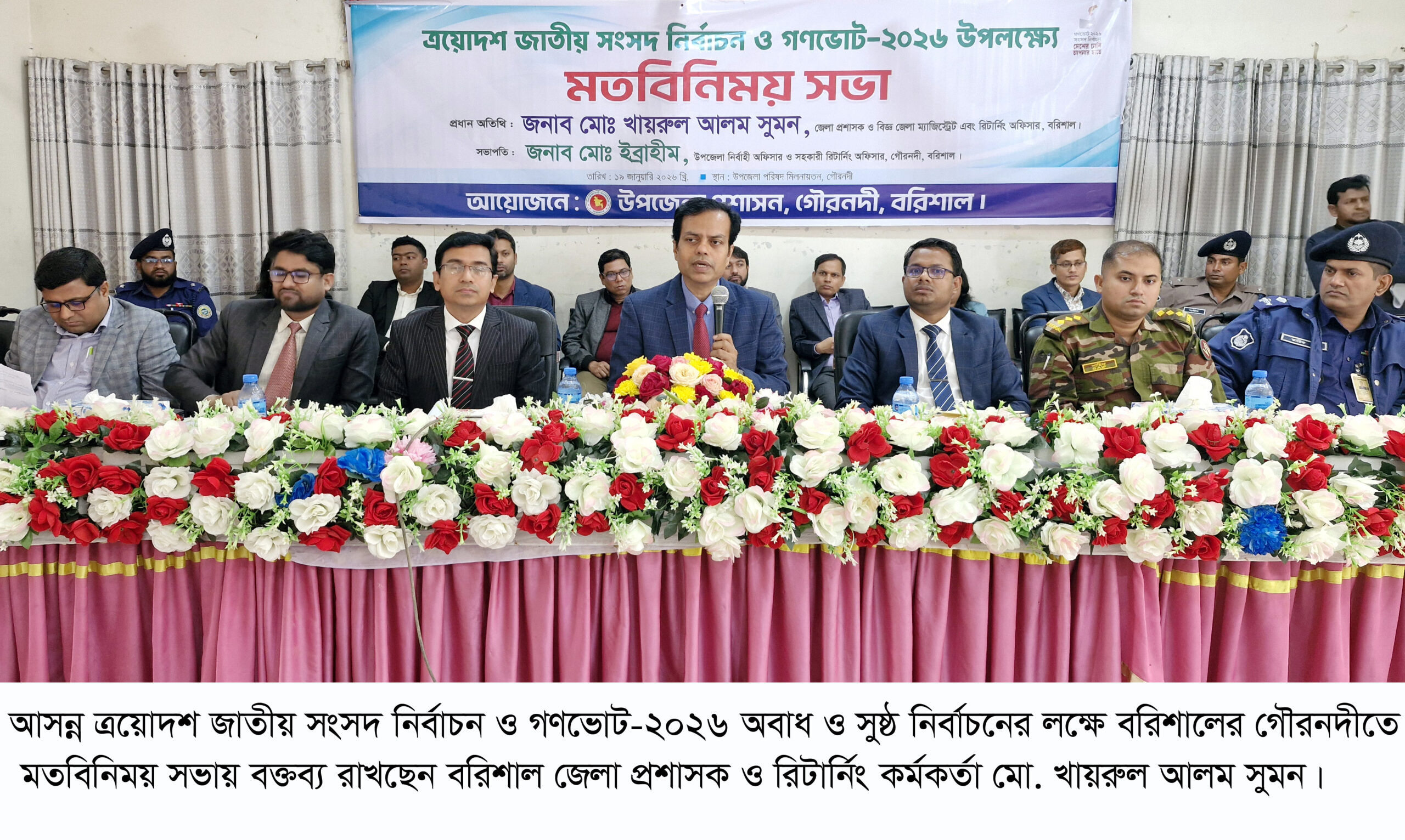ত্রয়োদশ সংসদ নির্বাচন ও গণভোট সফল করতে গৌরনদীতে জেলা প্রশাসকের মতবিনিময় সভা