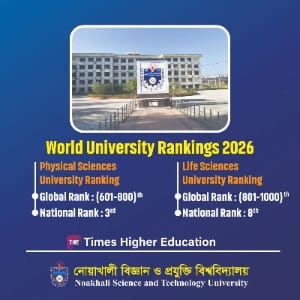 টাইমস হায়ার এডুকেশনের সাবজেক্ট র্যাঙ্কিংয়ে অবস্থানের গৌরব অর্জন করেছে নোয়াখালী বিজ্ঞান ও প্রযুক্তি বিশ্ববিদ্যালয় (নোবিপ্রবি)। গতকাল যুক্তরাজ্যভিত্তিক উচ্চশিক্ষা বিষয়ক সাময়িকী টাইমস হায়ার এডুকেশন (Times Higher Education) তাদের অফিসিয়াল ওয়েবসাইটে এই ...বিস্তারিত পড়ুন