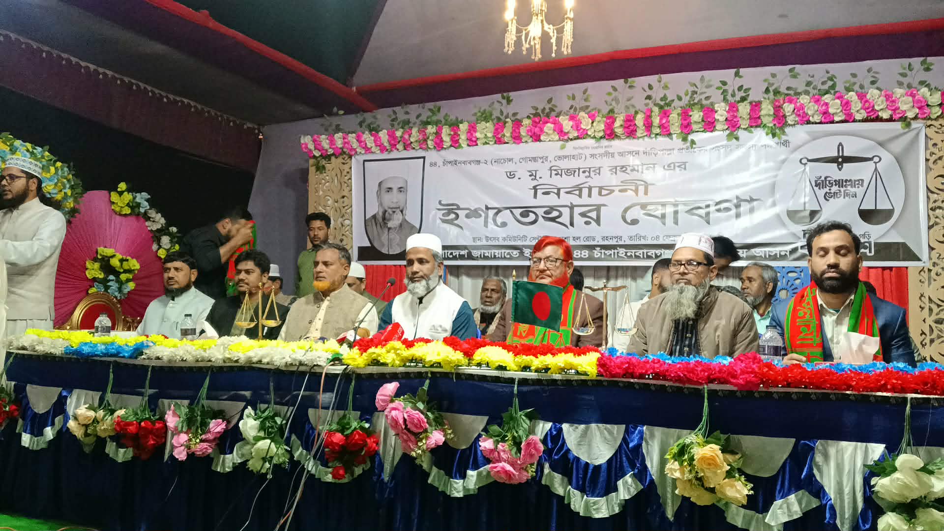 ৪৪-চাঁপাইনবাবগঞ্জ-২ আসনের বাংলাদেশ জামায়াতে ইসলামী নেতৃত্বাধীন ১১ দলীয় নির্বাচনী ঐক্য কর্তৃক মনোনীত জাতীয় সংসদ সদস্য পদপ্রার্থী ডঃ মিজানুর রহমানের নির্বাচনী ইশতেহার ঘোষণা