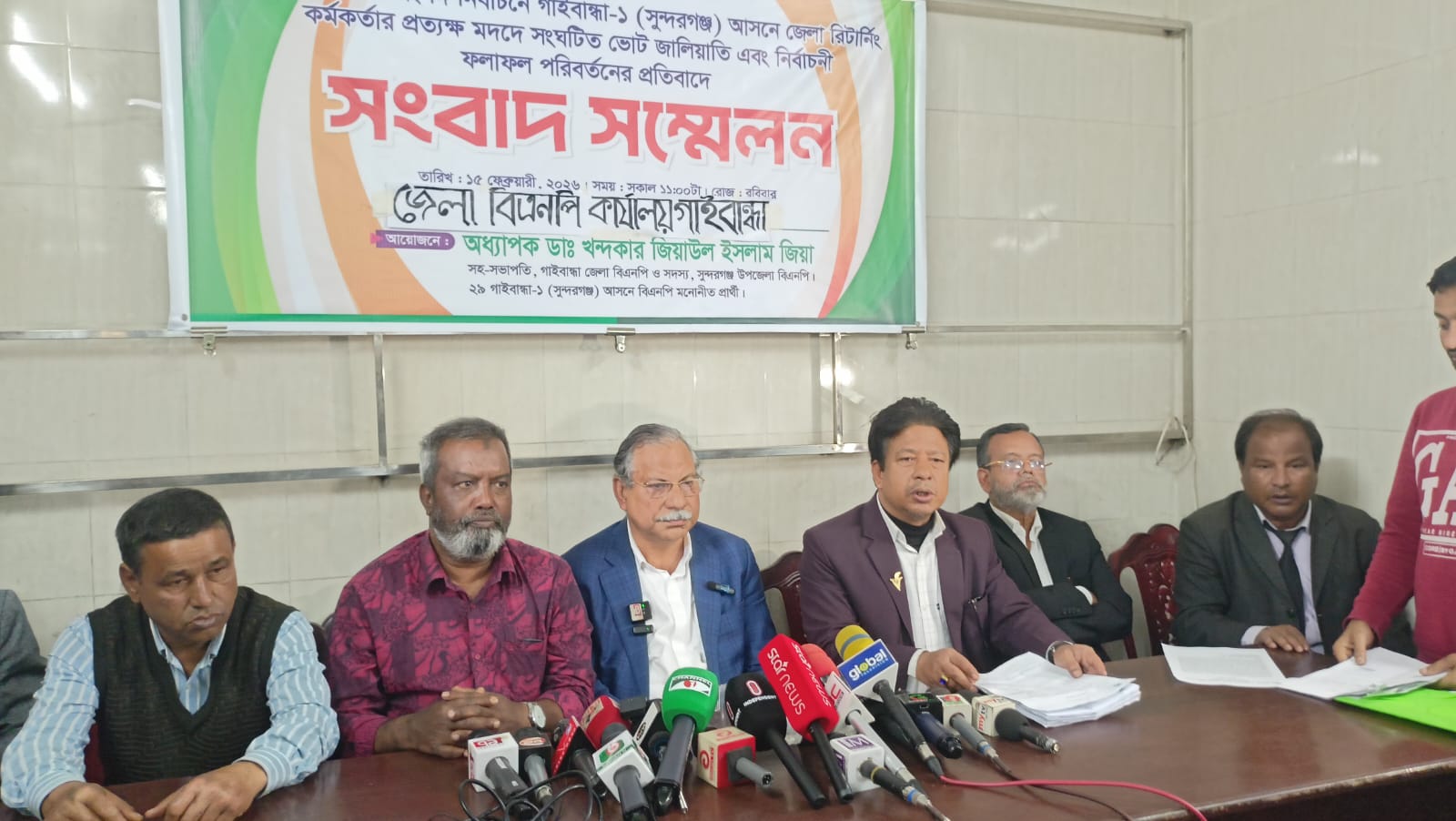 গাইবান্ধা-১ (সুন্দরগঞ্জ) আসনে সদ্য সমাপ্ত ত্রয়োদশ জাতীয় সংসদ নির্বাচনের ফলাফল প্রত্যাখ্যান করে পুনরায় ভোটগ্রহণের দাবি জানিয়েছেন বিএনপি মনোনীত প্রার্থী অধ্যাপক ডাঃ খন্দকার জিয়াউল ইসলাম মোহাম্মদ আলী (জিয়া)। আজ রোববার দুপুরে গাইবান্ধা প্রেস ক্লাবে আয়োজিত এক সংবাদ সম্মেলনে তিনি এ দাবি জানান।