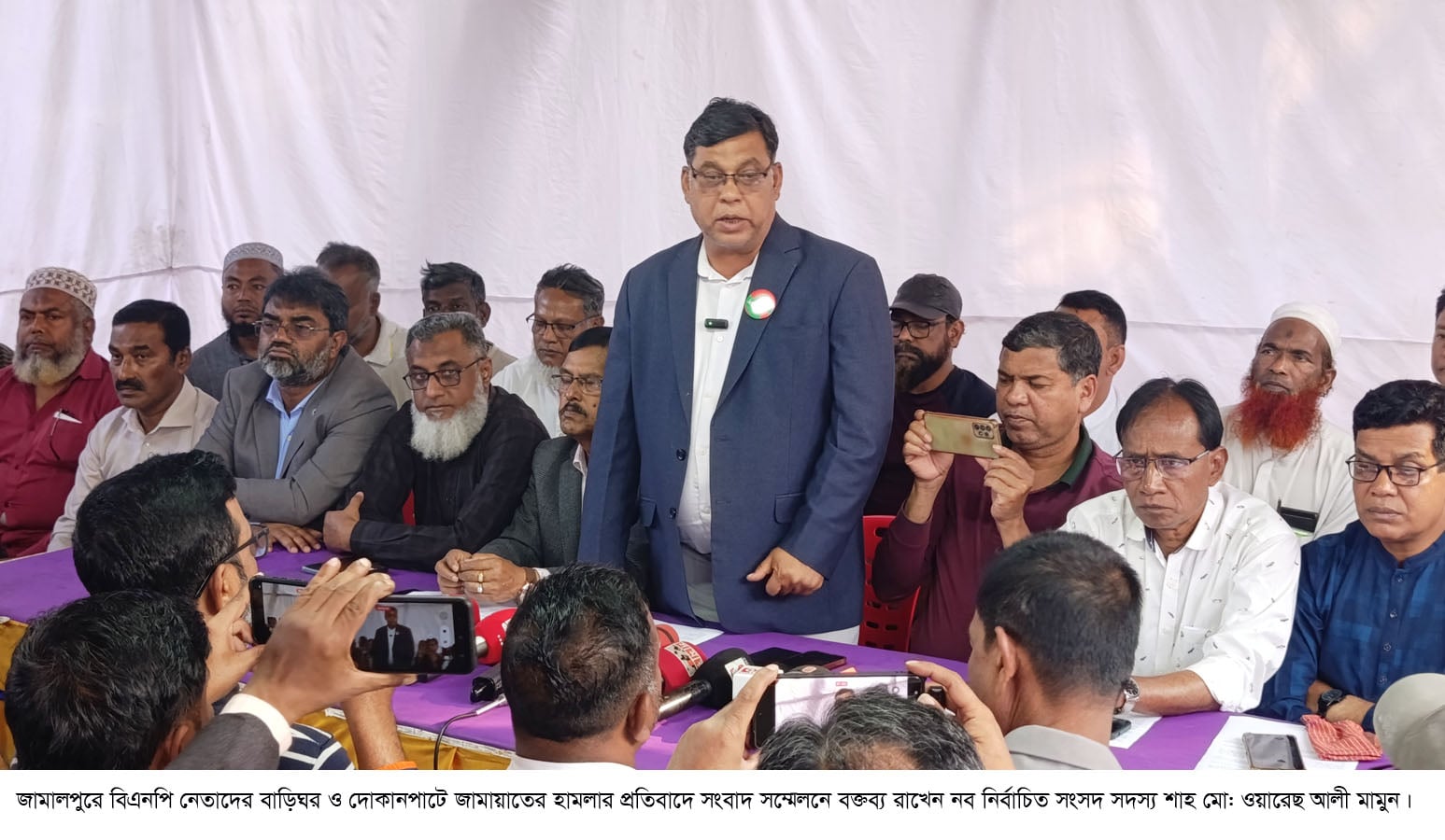 জামালপুরে বিএনপি নেতাদের বাড়িঘর ও দোকানপাটে হামলার অভিযোগে সংবাদ সম্মেলন