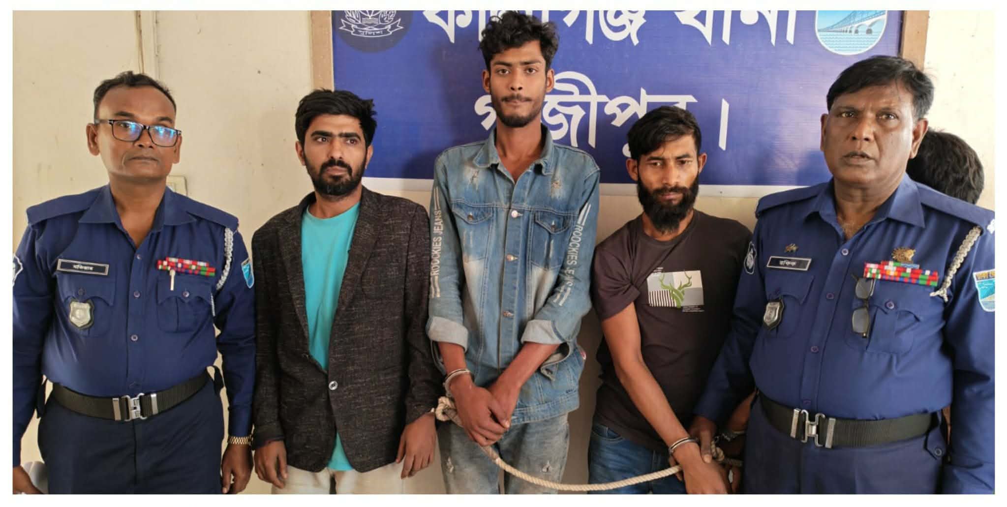 গাজীপুরের কালীগঞ্জে থানা পুলিশের রাত্রিকালীন কিলো-৫ ও যৌথবাহিনী মাদক বিরোধী বিশেষ অভিযানে ৩৮০ পিস ইয়াবা, ৪০ গ্রাম গাঁজা এবং মাদক বিক্রির নগদ ৫৬ হাজার ২২০ টাকা সহ ৩ জন মাদক ব্যবসায়ীকে গ্রেফতার করা হয়েছে। থানা সূত্রে জানা যায়, মঙ্গলবার (১৮ ফেব্রুয়ারী) গভীল রাতে কালীগঞ্জথানার রাত্রিকালীন কিলো-৫ ও যৌথবাহিনী কালীগঞ্জ পৌরসভার দেওপাড়া এলাকাস্থ সেভেন রিংস সিমেন্ট কোম্পানির ৬নং গেইট সংলগ্ন গোদারাঘাট রোডের পাকা রাস্তার উপর মাদক বিরোধী বিশেষ অভিযান পরিচালনা করেন। এ সময় ৩৮০ পিস ইয়াবা, ৪০ গ্রাম গাঁজা এবং মাদক বিক্রির নগদ ৫৬ হাজার ২২০ টাকা সহ ৩ জন আসামিকেগ্রেফতার করা হয়। গ্রেফতারকৃতরা হলেন, দেওপাড়া গ্রামের কবির মিয়ার ছেলে আল-আমিন (৩১), আনোয়ার হোসেনের ছেলে আবিদ হাসান (৩১) আব্দুল বাতেনের ছেলে সিয়াম আহমেদ (২১)। গ্রেফতারকৃত আসামিদের বিরুদ্ধে মাদকদ্রব্য নিয়ন্ত্রণ আইন, ২০১৮ এর ৩৬(১) সারণির ১০(ক)/৩৬(১) সারণির ১৯(ক) ধারায় কালীগঞ্জ থানায়১৭(২)২৬ নং মামলা রুজু করা হয়। বুধবার দুপুরে আসামীদের গাজীপুর আদালতে পাঠানো হয়েছে। কালীগঞ্জ থানার অফিসার ইনচার্জ (ওসি) মো. জাকির হোসেন বলেন,গ্রেফতারকৃত আসামিদের বিরুদ্ধে থানায় মামলা রুজু করা হয়েছে। দুপুরে আসামীদের গাজীপুর আদালতে পাঠানো হয়েছে। মাদকমুক্ত সমাজ গড়তে আইনশৃঙ্খলা বাহিনীর অভিযান অব্যাহত থাকবে।