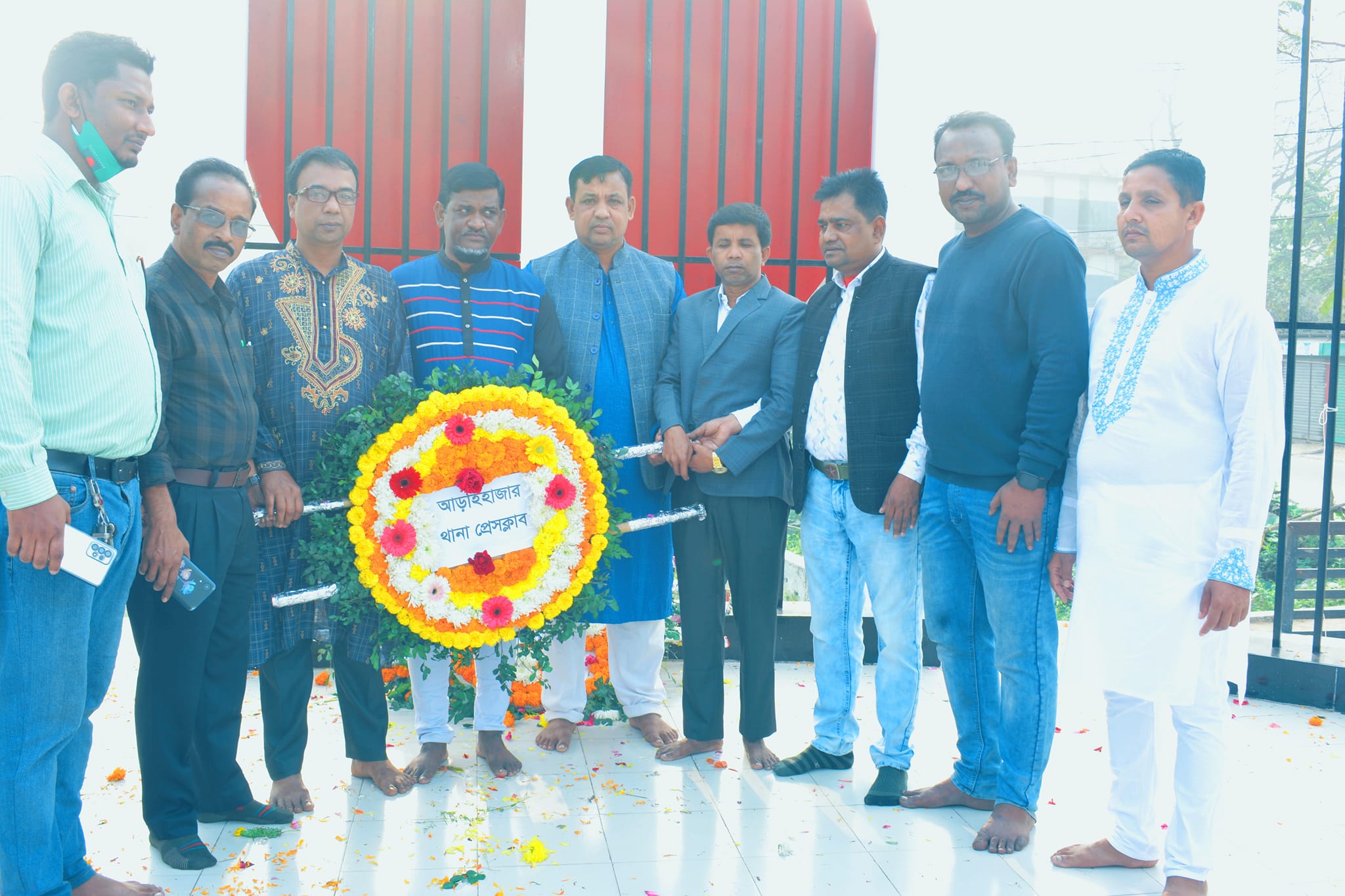 নারায়ণগঞ্জের আড়াইহাজারে উপজেলা কেন্দ্রীয় শহীদ মিনারে পুষ্প স্তবক অর্পণের মধ্য দিয়ে ৫২ এর ভাষা শহীদদের প্রতি শ্রদ্ধা জ্ঞাপন করেছে আড়াইহাজার থানা প্রেসকাব। শনিবার (২১ ফেব্রুয়ারী) সকালে এ শ্রদ্ধা নিবেদন করা হয়।