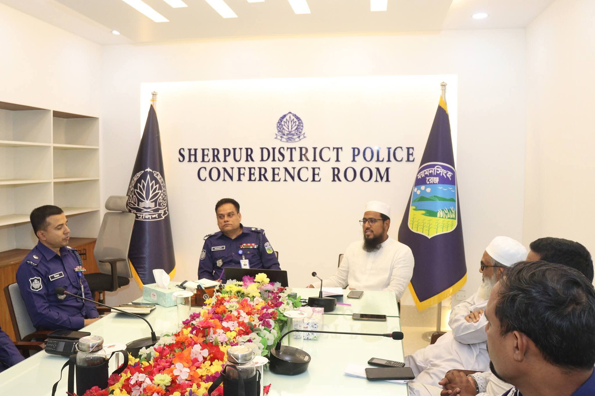 আসন্ন পবিত্র ঈদুল ফিতর উপলক্ষে শেরপুর জেলার সার্বিক আইনশৃঙ্খলা পরিস্থিতি স্থিতিশীল রাখা এবং জননিরাপত্তা নিশ্চিতকল্পে মতবিনিময় সভা অনুষ্ঠিত হয়েছে।