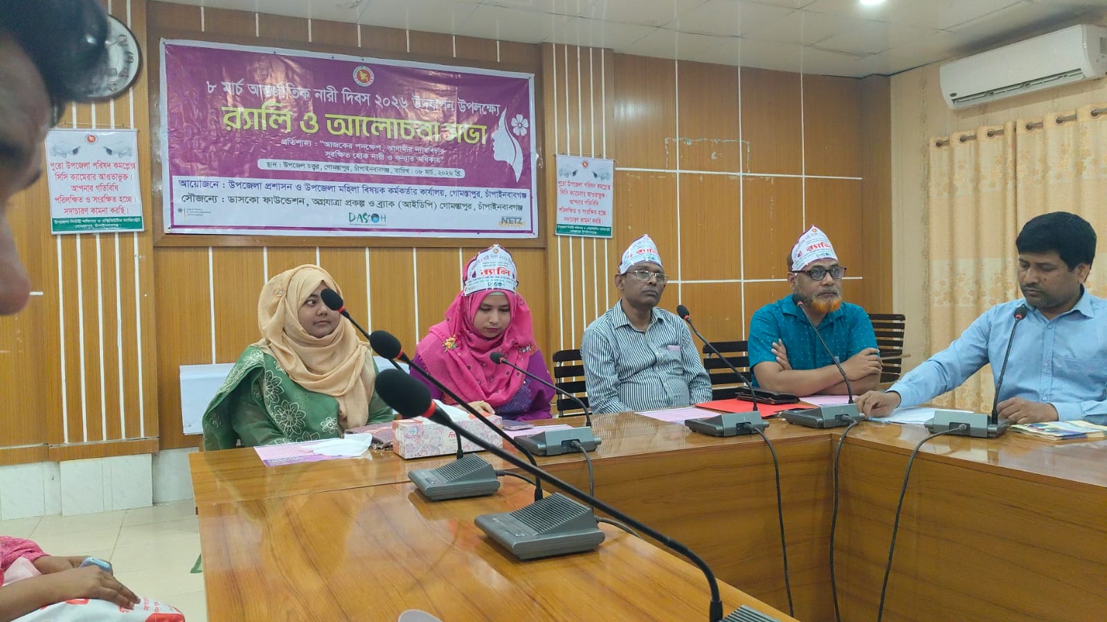 আজকের পদক্ষেপ, আগামীর ন্যায়বিচার সুরক্ষিত হোক নারী ও কন্যার অধিকার প্রতিপাদ্য শ্লোগান কে সামনে রেখে চাঁপাইনবাবগঞ্জের গোমস্তাপুর উপজেলায় ৮ মার্চ আন্তর্জাতিক নারী দিবস উদযাপন উপলক্ষে র্যালী ও আলোচনা সভা অনুষ্ঠিত হয়। দিবসটি উপলক্ষে উপজেলা প্রশাসন ও মহিলা বিষয়ক সম্পাদক অধিদপ্তর আয়োজিত রবিবার সকাল দশটায় উপজেলা সভাকক্ষে আয়োজিত সভায় সভাপতিত্ব করেন সহকারী কমিশনার ভুমি উম্মে সালমা রুমা। স্বাগত বক্তব্য রাখেন উপজেলা মহিলা বিষয়ক অফিসার পঙ্কজ কুমার দাস, উপজেলা শিক্ষা অফিসার ইছাহাক আলি, রহনপুর পৌর নির্বাহী কর্মকর্তা খায়রুল হক, উপজেলা প্রেসক্লাব সভাপতি আতিকুল ইসলাম আজম, তোজাম্মেল হোসেন একাডেমী শিক্ষিকা পারুল খাতুন , ডাসকো প্রতিনিধি আবুল বাসার, ব্রাক প্রতিনিধি সুমতি একা, নারী কর্মী মিতালি পাড়ে প্রমুখ।