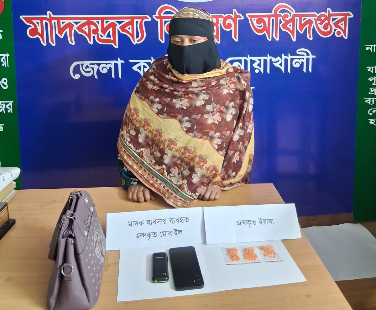 নোয়াখালীর সদর উপজেলার মাইজদীতে ডাক্তার দেখানোর ছদ্মবেশে ইয়াবা বিক্রির সময় পান্না আক্তার (৪০) নামে এক নারী মাদক কারবারিকে গ্রেপ্তার করেছে মাদকদ্রব্য নিয়ন্ত্রণ অধিদপ্তর। এসময় তার কাছ থেকে ১৫০ পিস ইয়াবা ও মাদক ব্যবসায় ব্যবহৃত দুটি মোবাইল ফোন জব্দ করা হয়।