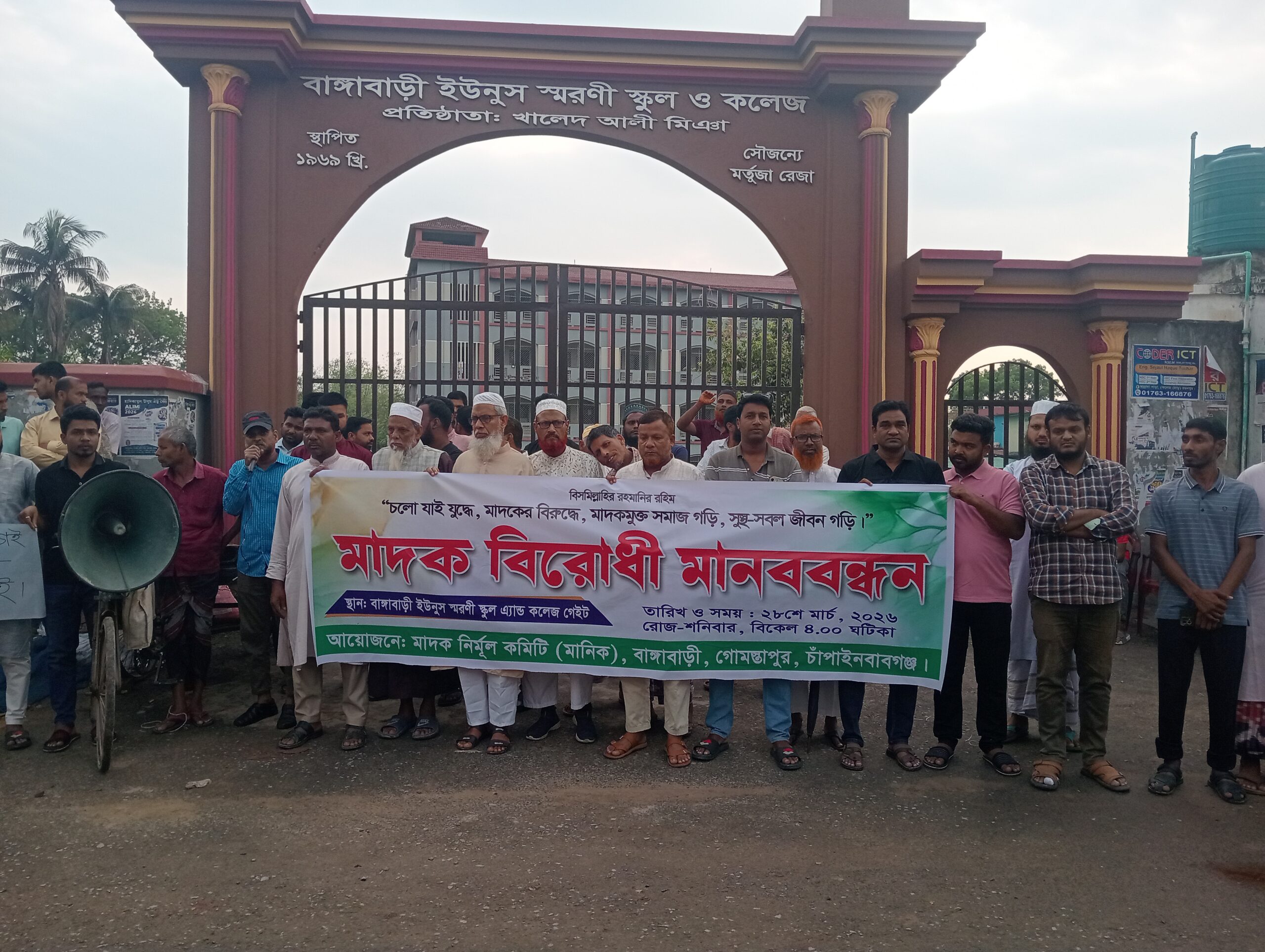 চাঁপাই নবাবগঞ্জের গোমস্তাপুরের বাংগাবাড়িতে মাদক বিরোধী মানববন্ধন অনুষ্ঠিত হয়। বাংগাবাড়ি মাদক নির্মুল কমিটির আয়োজনে শনিবার বিকেল