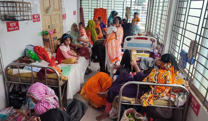 মধ্যে ৩ মাস থেকে ১২ মাস বয়সী শিশু রয়েছে ২৫ জন। আর মেডিসিন ওয়ার্ডে ভর্তি দুইজন মধ্যে একজনের বয়স ২২ বছর, অন্যজনের বয়স ৩২ বছর।সোমবার দুপুরে সরেজমিন ঘুরে পাবনা জেনারেল হাসপাতালে দেখা যায়, শিশু ওয়ার্ডে রোগীতে ঠাসা। মেঝেতেও রোগী। হেঁটে যাবার উপায় নেই। শিশু ওয়ার্ডে একেকটি শয্যায় দুইজন, তিনজন করে ভর্তি। এই ওয়ার্ডের বারান্দায় একটি কাঁচঘেরা কক্ষে হাম রোগে আক্রান্ত শিশুরা চিকিৎসাধীন। সেখানেও একেকটি শয্যায় দুইজন করে। মেঝেতেও ৪টি শিশু চিকিৎসাধীন রয়েছে। পাবনা সদর উপজেলার আশুতোষপুর গ্রামের গৃহবধূ স্মৃতি খাতুন হামে আক্রান্ত তার ৪ মাস বয়সী মেয়েকে ২৬ মার্চ হাসপাতালে ভর্তি করেছেন। এখনও সুস্থ হয়নি। তিনি জানান, তার মেয়ের প্রথমে ঠান্ডা-জ্বর আসে। তারপর শরীরে, মুখে লাল গুটি গুটি বের হয়। অসহ্য যন্ত্রণায় ছটফট করে। বিছানায় ঘুমাতে পারে না। এমন অবস্থায় তারা হাসপাতালে এলে চিকিৎসকদের পরামর্শে ভর্তি করা হয়েছে। পরে