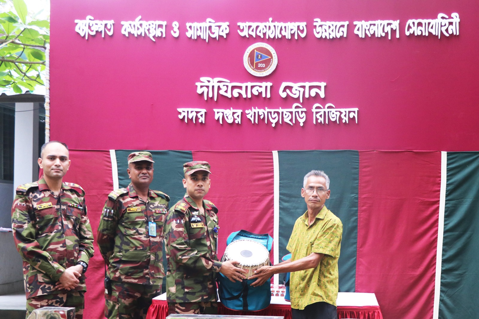 এ সময় উপকারভোগীদের হাতে নগদ অর্থ, একটি পরিবারকে একটি সেলাই মেশিন, পাঁচটি পরিবারকে দুটি করে ছাগল তুলে দেওয়া হয়।এছাড়াও চারটি মাদ্রাসায় জিরা এবং একটি চার্জে বাদ্যযন্ত্র প্রদান করা হয়।অনুষ্ঠানে দীঘিনালা জোনের সেনা কর্মকর্তাসহ স্থানীয় গণমাধ্যমকর্মীরা উপস্থিত ছিলেন।জোন কমান্ডার লেফটেন্যান্ট কর্নেল আল-আমিন উপস্থিত সবার সঙ্গে কুশল বিনিময় করে বলেন, “বাংলাদেশ সেনাবাহিনীর দীঘিনালা জোন জাতি, ধর্ম ও বর্ণ নির্বিশেষে আর্তমানবতার সেবায় কাজ করে যাচ্ছে। পাহাড়ের সকল সম্প্রদায়ের মধ্যে শান্তি, সম্প্রীতি ও ভ্রাতৃত্বের বন্ধন অটুট রাখতে এ ধরনের জনকল্যাণমূলক কার্যক্রম অব্যাহত থাকবে।” সহায়তা পেয়ে উপকারভোগীরা কৃতজ্ঞতা প্রকাশ করেন এবং জানান, এ ধরনের উদ্যোগ তাদের জীবনমান উন্নয়নে গুরুত্বপূর্ণ ভূমিকা রাখবে। সংশ্লিষ্টরা আশা করছেন, দীঘিনালা সেনা জোনের এ মানবিক কার্যক্রম স্থানীয় জনগণের সঙ্গে আস্থা ও সৌহার্দ্যের সম্পর্ক আরও সুদৃঢ় করবে।