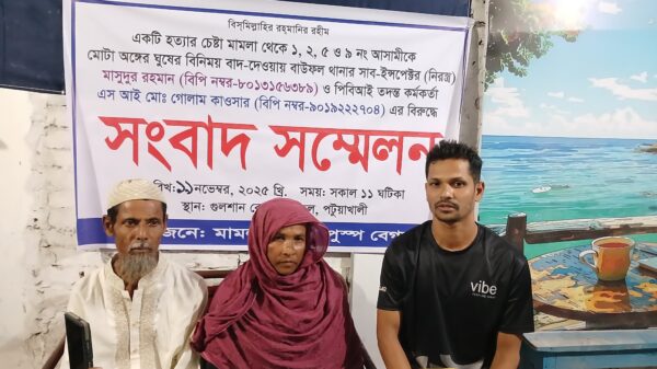 পটুয়াখালীর বাউফলে অর্থের বিনিময়ে একটি হত্যা চেষ্টা মামলার প্রধান আসামিসহ চারজনের নাম বাদ দেয়ার অভিযোগ এনে তদন্ত কর্মকর্তা এস আই মাসুদুর রহমানের বিচার দাবী করে সংবাদ সম্মেলন করেছেন মামলার বাদী