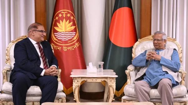 বাংলাদেশে নিযুক্ত পাকিস্তানের হাইকমিশনার ইমরান হায়দার রোববার ঢাকার রাষ্ট্রীয় অতিথি ভবন যমুনায় অন্তর্বর্তী সরকারের প্রধান উপদেষ্টা প্রফেসর মুহাম্মদ ইউনূসের সঙ্গে সৌজন্য সাক্ষাৎ করেছেন। সাক্ষাৎকালে উভয়পক্ষ বাণিজ্য, বিনিয়োগ ও বিমান চলাচলের
