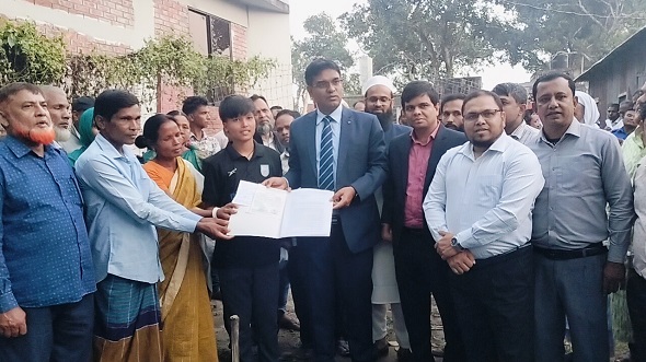 বাংলাদেশ জাতীয় নারী অনুর্দ্ধ ২০ দলের নারী ফুটবলার তৃষ্ণা রানীকে বসতবাড়ীর জমি ও পাকাঘর উপহার দিয়েছেন পঞ্চগড় জেলা প্রশাসক সাবেদ আলী। তিনি বুধবার (১২) নভেম্বর সন্ধ্যায় ময়দানদিঘী ইউনিয়ন ভুমি অফিসের