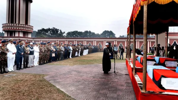 আন্তর্জাতিক নিউজ ডেস্ক : সুদানে শাহাদাত বরণকারী ছয় শান্তিরক্ষীর নামাজে জানাজা আজ ঢাকা সেনানিবাসের কেন্দ্রীয় মসজিদে অনুষ্ঠিত হয়েছে। সুদানের আবেই এলাকায় গত ১৩ ডিসেম্বর জাতিসংঘ শান্তিরক্ষা মিশনের একটি ঘাঁটিতে সংঘটিত