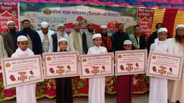 নোয়াখালী সুবর্ণচরে তরিকা সায়েদ ফাউন্ডেশন (টিএসএফ) এর উদ্যোগে ৩য় হিফজুল কুরআন প্রতিযোগিতা অনুষ্ঠিত হয়েছে। শনিবার (২৭ ডিসেম্বর) উপজেলার খাসের হাট জামে মসজিদ মাঠ প্রাঙ্গণে দিনব্যাপী এ প্রতিযোগিতা অনুষ্ঠিত হয়। অনুষ্ঠানে